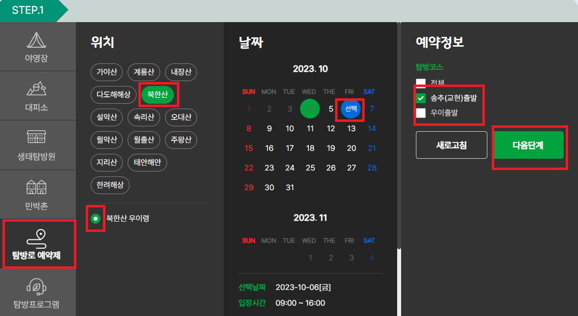 2. 스텝 1의 탐방로 예약제를 눌러줍니다